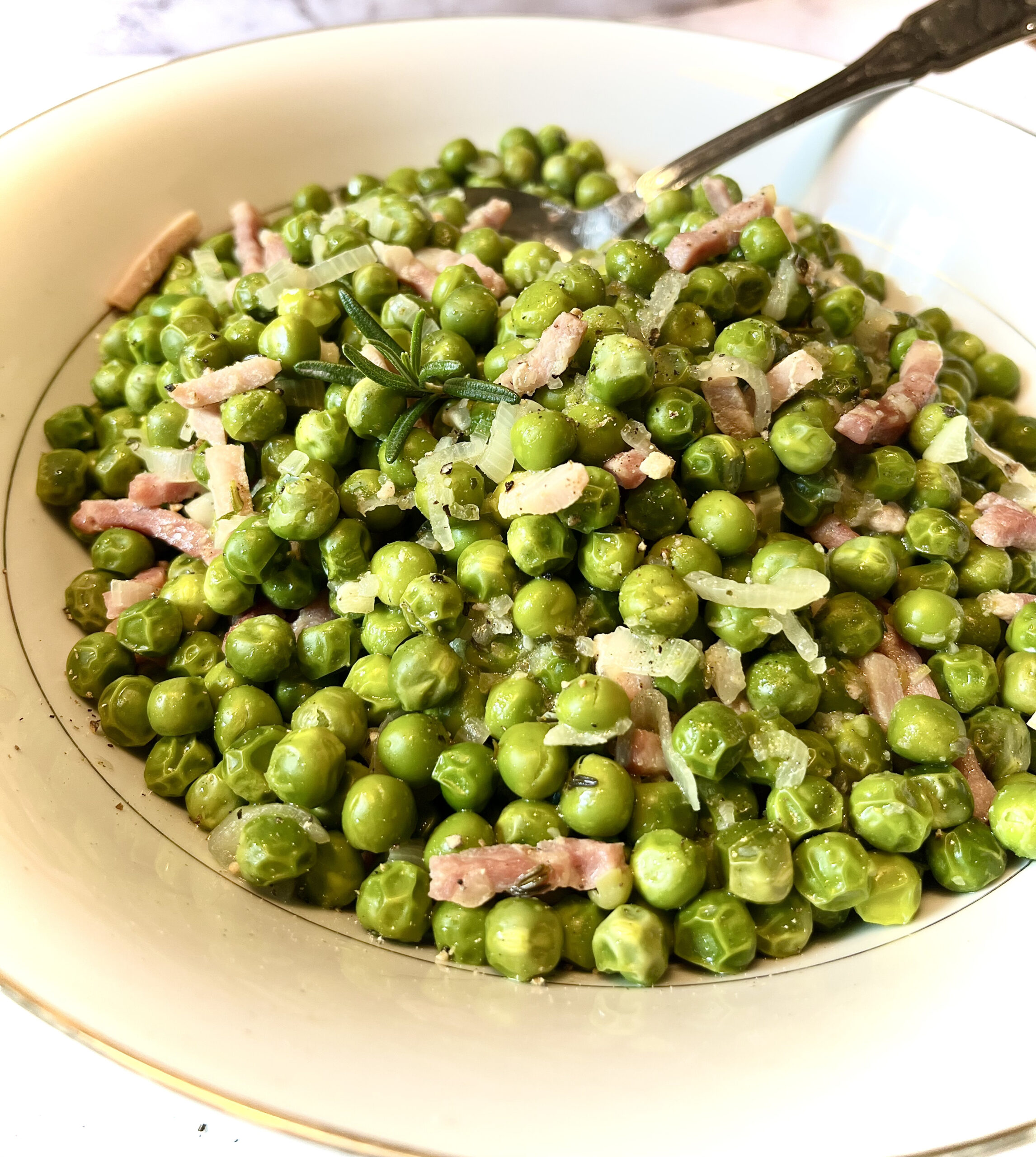 🧄 Tender peas are layered with flavor from sautéed garlic, delicate shallots, and savory bacon.