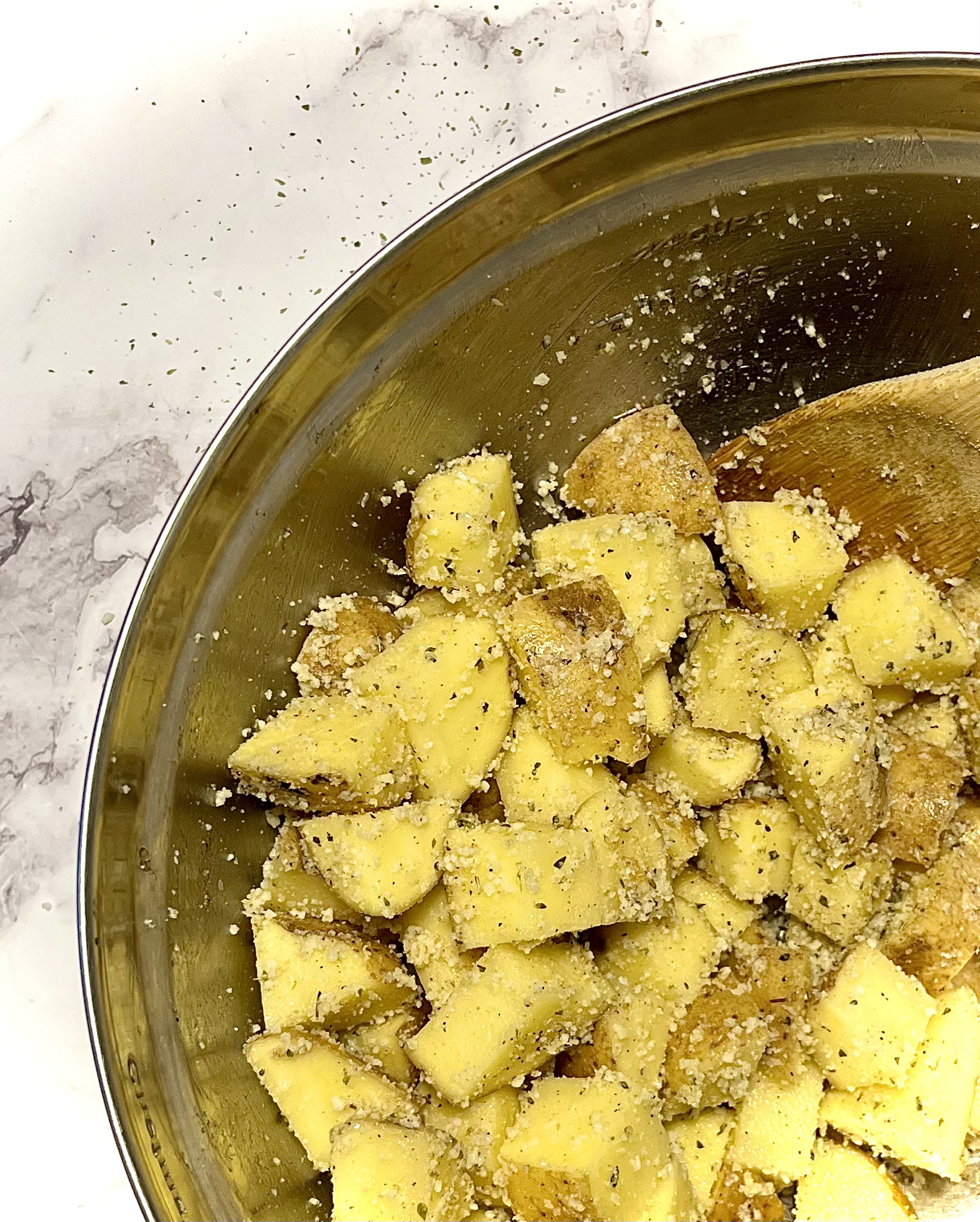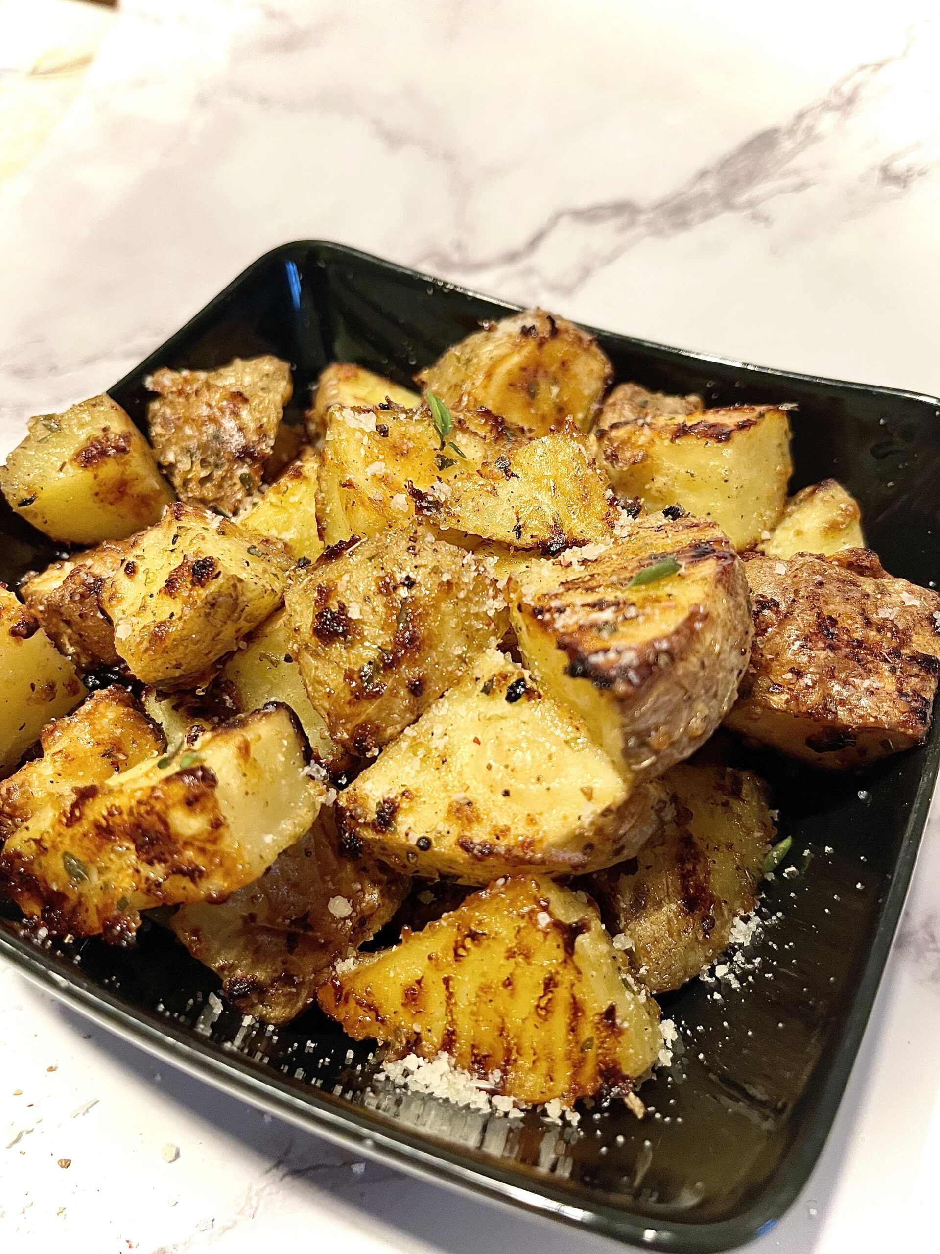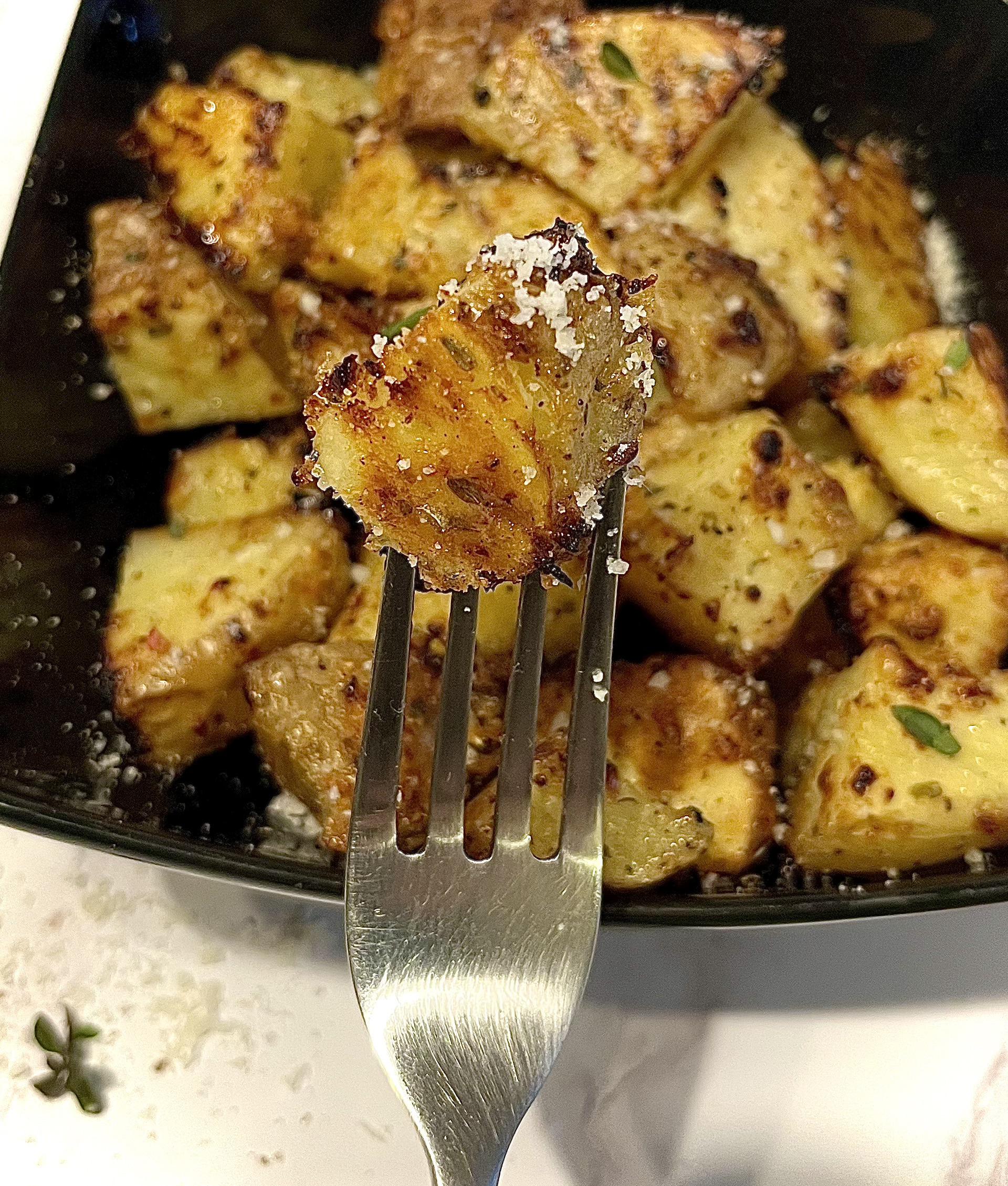 Irresistible honey-caramelized French roasted potatoes are oven-baked until golden, with a crisp parmesan crust and tender centers. Perfectly balancing sweet and savory flavors, they add warmth and comfort to any meal. Enjoy them as a delicious side dish or on their own with your favorite sauce.